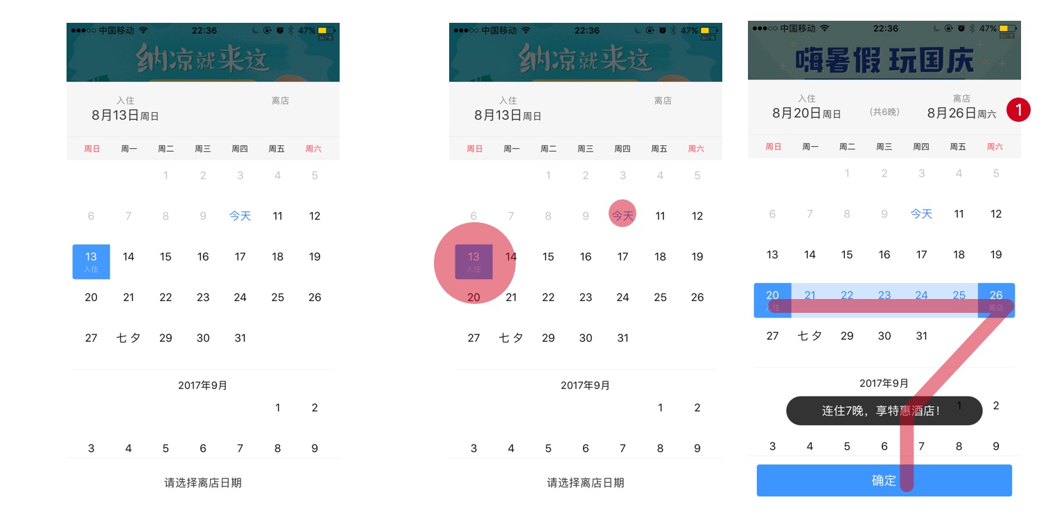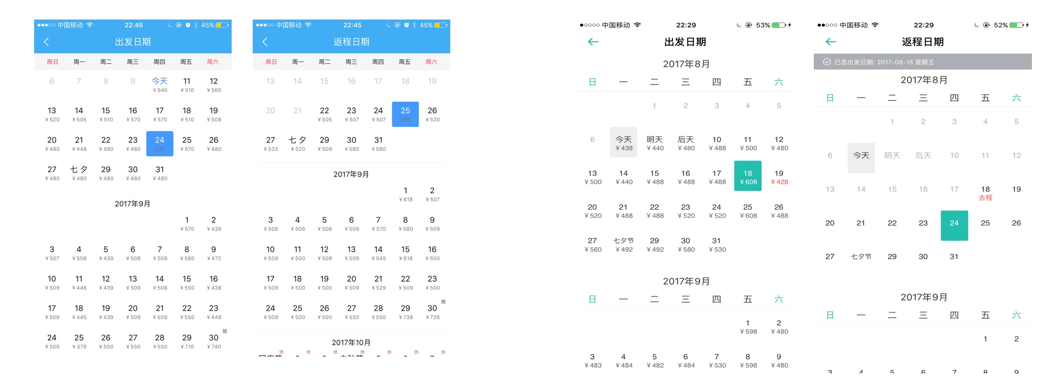 目前旅游、票務(wù)app的日期選擇器的設(shè)計(jì)一般有兩大類: