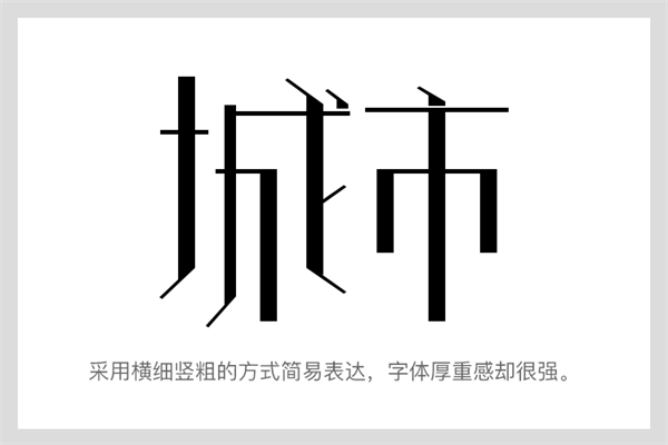 雙仙說的是文字里面的橫和豎。選定好項目需要的字體后,把橫筆畫變成細長,豎筆畫相對應加粗,讓橫與豎形成粗細鮮明對比,彰顯設計風格。(為什么沒有橫粗豎細,大家可以自己嘗試一下看看,向平衡度和識別度方面考慮一下,作者曾經(jīng)因此被領導罵過,不提了,一個慘字了得)。