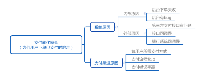 思維框架是要素的窮舉,并且能站在高層次看清楚要素之間的聯(lián)系,看清楚要素全貌。在分析問(wèn)題時(shí)候,我們可以用思維框架來(lái)鋪開(kāi)整個(gè)圖譜,看清楚其中的關(guān)鍵。比如如果某商城從下單到支付,轉(zhuǎn)化率很低,那我們可以嘗試用思維框架來(lái)分析。從各方面找出轉(zhuǎn)化率低的原因。