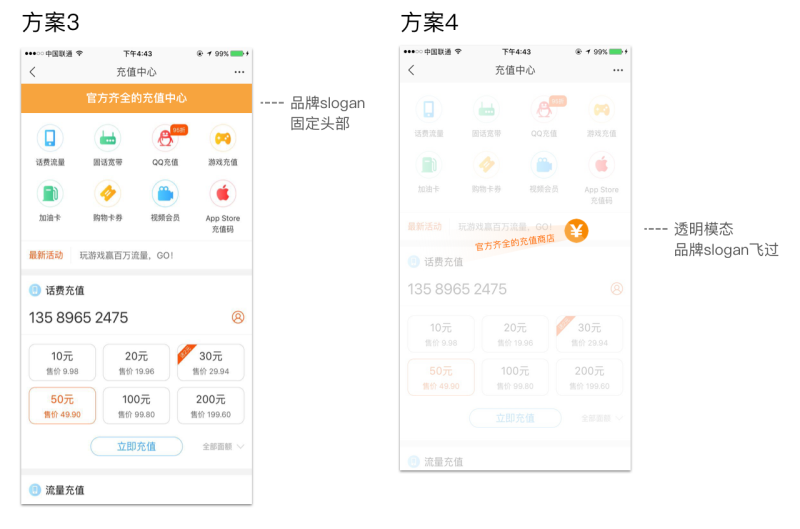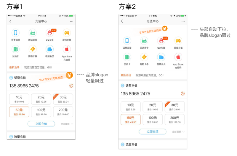 突出品牌-但是同時(shí)也希望傳達(dá)品牌概念,讓用戶(hù)可以可以知道這里可以充所有業(yè)務(wù)。