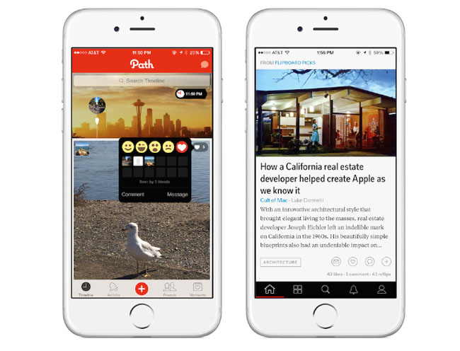 Path和Flipboard是每個(gè)像素都趨近好的典范。不過要注意,如果一個(gè)段落混合了粗體緊湊型的san-serif字體與serif字體,它會(huì)在Flipboard上表現(xiàn)得不平衡。