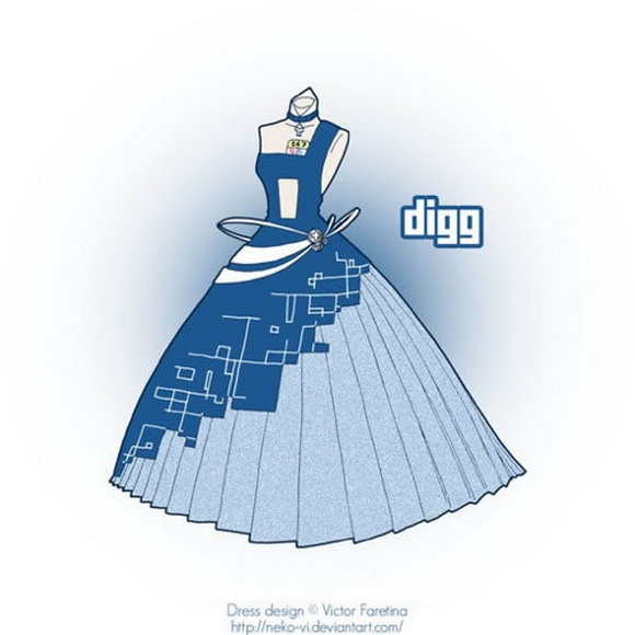 設(shè)計師 Victor Faretina把一些平時瀏覽的網(wǎng)站頁面或logo創(chuàng)意般地想象成一條裙子,然后就有了以下作品,再然后中國網(wǎng)友把人人和新浪也給做成了裙子……