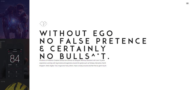 以黑白灰配色,同時(shí)非常少量地運(yùn)用其他鮮明的色調(diào),幾乎是黑白灰配色的秘籍之一,然而在整個(gè)構(gòu)圖上,還需要更多空間,才能表達(dá)出平靜、冷酷中的躍動(dòng)感。這個(gè)網(wǎng)站的設(shè)計(jì)遵守了這一秘籍,但又增加了其他的圖片色,讓畫面略顯復(fù)雜。