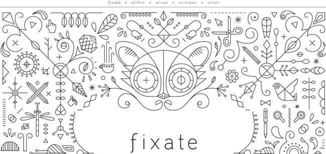 整個(gè)首頁采用黑色線條矢量圖組成一個(gè)密集式的豐富多彩的圖片,突出設(shè)計(jì)原創(chuàng)性。而字體也與此相稱,整個(gè)網(wǎng)站設(shè)計(jì)感很強(qiáng),還適當(dāng)裝飾了動(dòng)畫效果,不失為上乘之作。