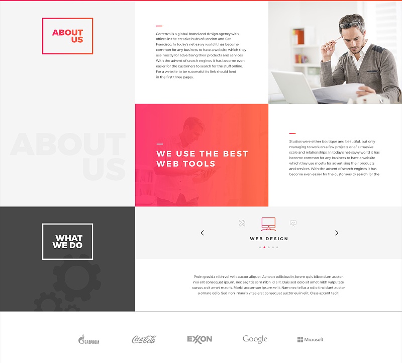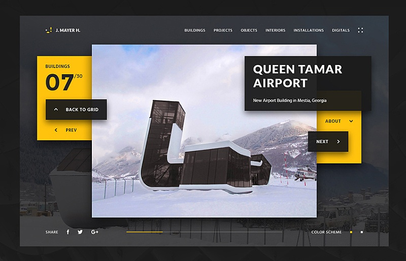 下面這個(gè)建筑公司的首頁(yè),采用了方形的元素進(jìn)行大小層次感的相互結(jié)合起來(lái),讓整個(gè)畫面變得極其有穩(wěn)重感,讓原本網(wǎng)站上復(fù)雜而多的類容,變得條理清晰,干凈簡(jiǎn)潔。同時(shí)在畫面的版式也是獨(dú)裁新意。