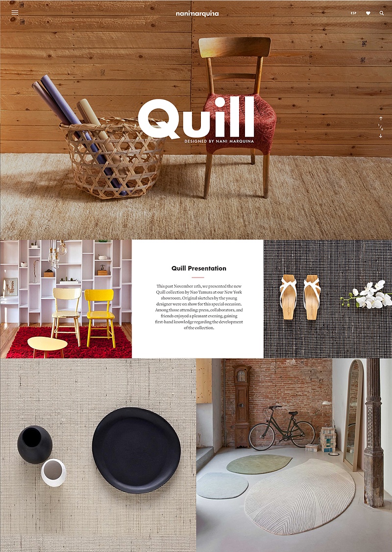 下面是一家家具類的網(wǎng)站,設(shè)計(jì)師利用方塊的大小來(lái)做對(duì)比 。使得整個(gè)畫面中間的元素組織起來(lái)變得清晰有條理,讓用戶在視覺(jué)上變得有層次感, 使得整個(gè)版面變得簡(jiǎn)約清晰。