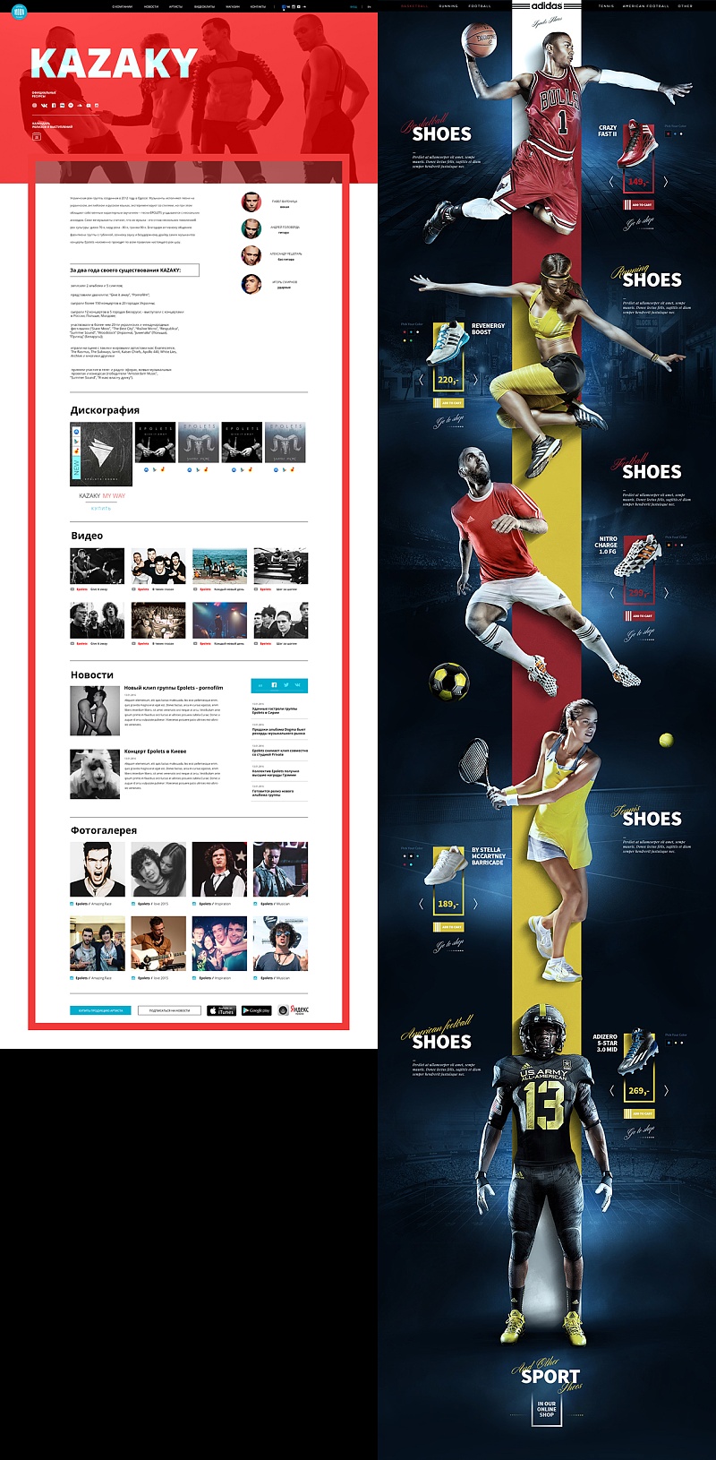 右邊是阿迪達(dá)斯的一個(gè)品牌網(wǎng)站,設(shè)計(jì)師利用了方形的元素作為視覺(jué)引導(dǎo),將用戶的視覺(jué)一步一步的從引導(dǎo)下去,了解他們的全部商品。