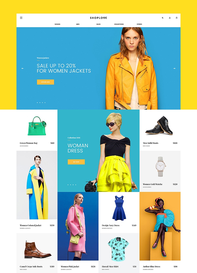 一些商城網(wǎng)站也融入了方形的元素,有效的管理和整合了各類商品信息,同時(shí)也利于網(wǎng)站適配不同端口設(shè)備展示: