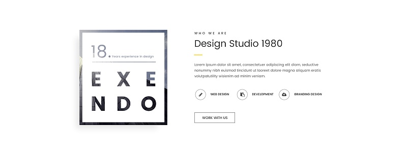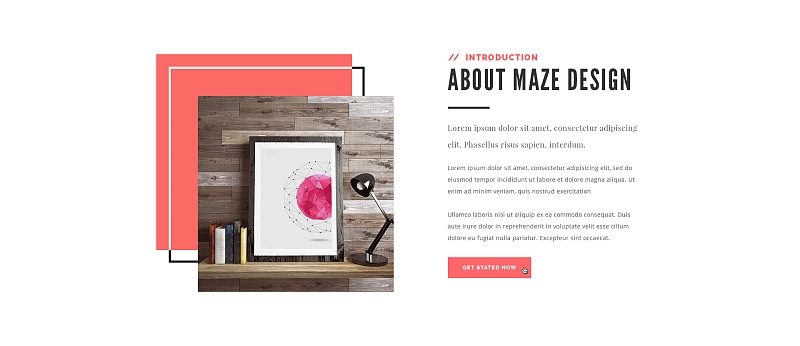 現(xiàn)在越來(lái)越多的方框/方形元素出現(xiàn)在網(wǎng)站圖片中,下面案例是一個(gè)標(biāo)準(zhǔn)的圖文結(jié)合的設(shè)計(jì)案例,設(shè)計(jì)師為了讓圖片和文案左右兩邊的視覺(jué)平衡,于是加入了方框/方形的元素與圖片進(jìn)行結(jié)合。瞬間整個(gè)畫面變的富有設(shè)計(jì)感起來(lái)了。