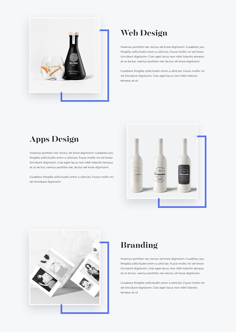 下面案例圖片中設(shè)計(jì)師為了讓多張圖片進(jìn)行統(tǒng)一 協(xié)調(diào)起來(lái),也加入了方框的元素,給用戶傳達(dá)了三塊內(nèi)容的體系關(guān)系,讓原本簡(jiǎn)約而優(yōu)雅的畫面變得多姿多彩。