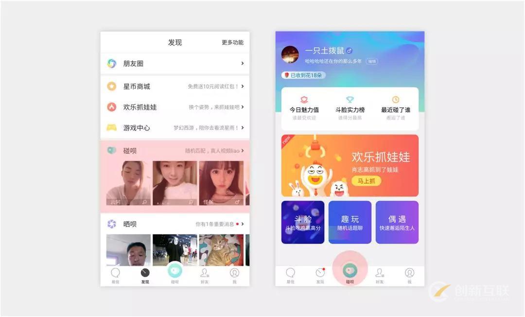 隨著產(chǎn)品功能的迭代和業(yè)務(wù)調(diào)整,發(fā)現(xiàn)頁作為流量入口,起到了推廣功能和入口跳轉(zhuǎn)的作用。因此,也就積累了一些基本的體驗(yàn)問題,如:用戶點(diǎn)擊“碰唄”區(qū)域直接跳轉(zhuǎn)到需要進(jìn)行推廣的tab,當(dāng)用戶從未使用過“碰唄”時(shí),就會(huì)產(chǎn)生疑惑和困擾
