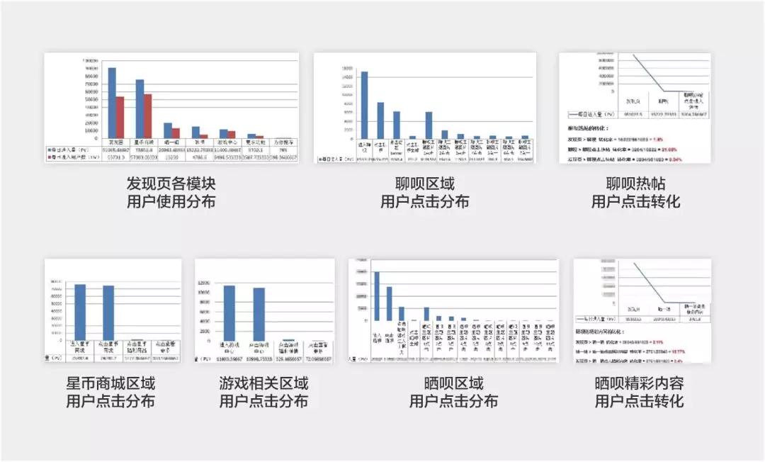 當(dāng)收集數(shù)據(jù)后,需對數(shù)據(jù)進(jìn)行分析整理,此次改版用到的方法是非常簡單且常用的方法,即同一頁面點(diǎn)擊量和點(diǎn)擊人數(shù)的對比、前后頁面的轉(zhuǎn)化率計(jì)算分析。