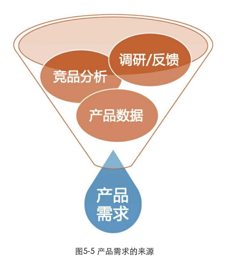 在實(shí)際項(xiàng)目中,采集需求的主要方式有用戶調(diào)研、競(jìng)品分析、用戶反饋(上線后)、產(chǎn)品數(shù)據(jù)(上線后)等,如圖5-5所示。這些方法都是產(chǎn)品經(jīng)理和設(shè)計(jì)師需要密切關(guān)注的。