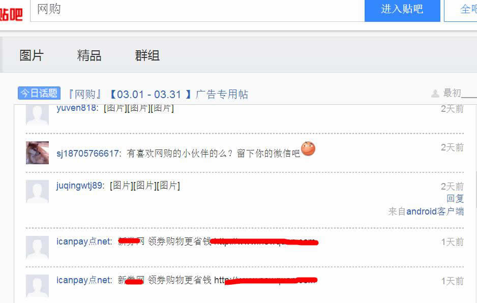 去各個購物、網(wǎng)購和與年輕女性相關(guān)的貼吧,發(fā)帖或者留言。