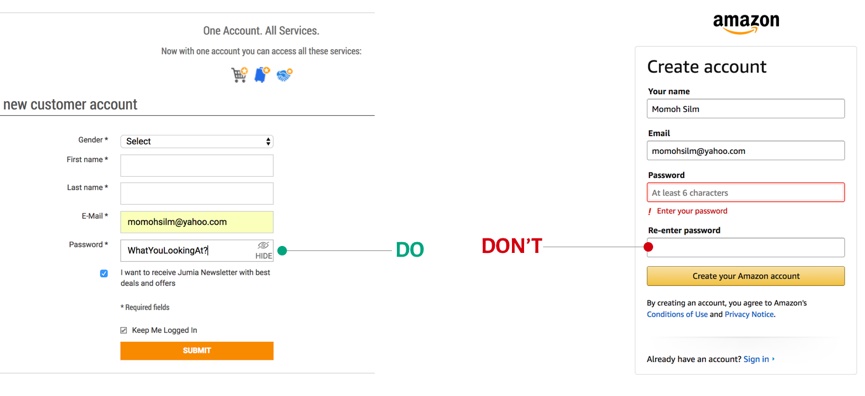 △ Facebook和Amazon采用了兩種不同的驗(yàn)證反饋方式