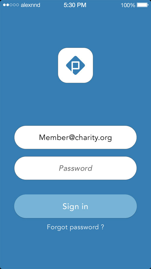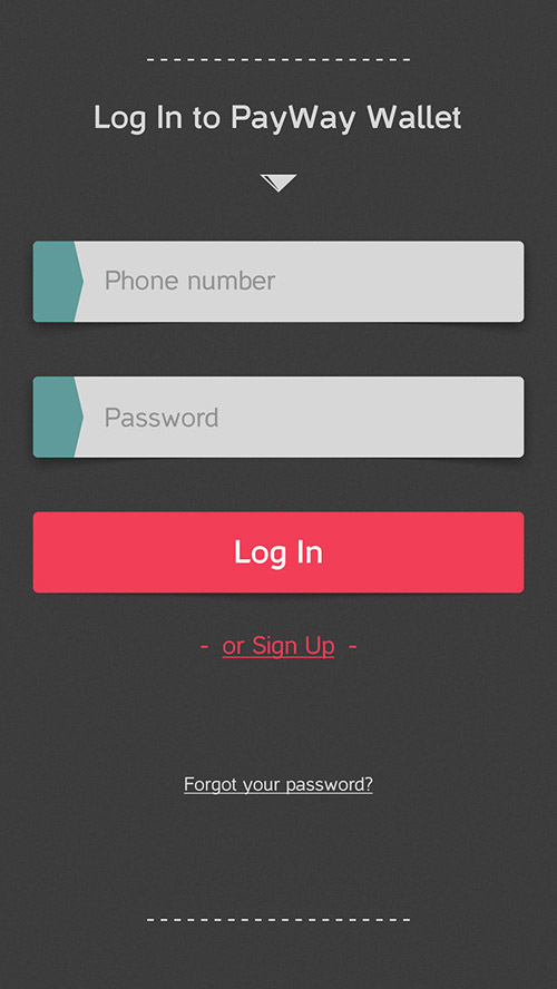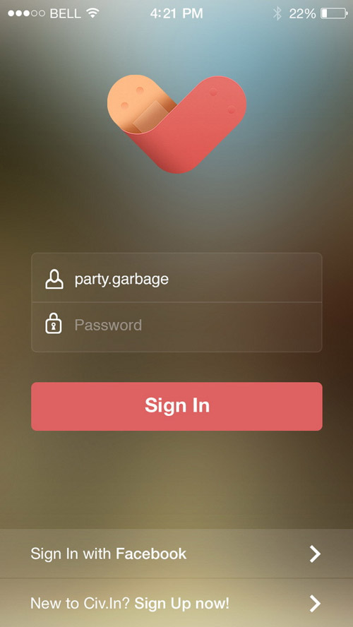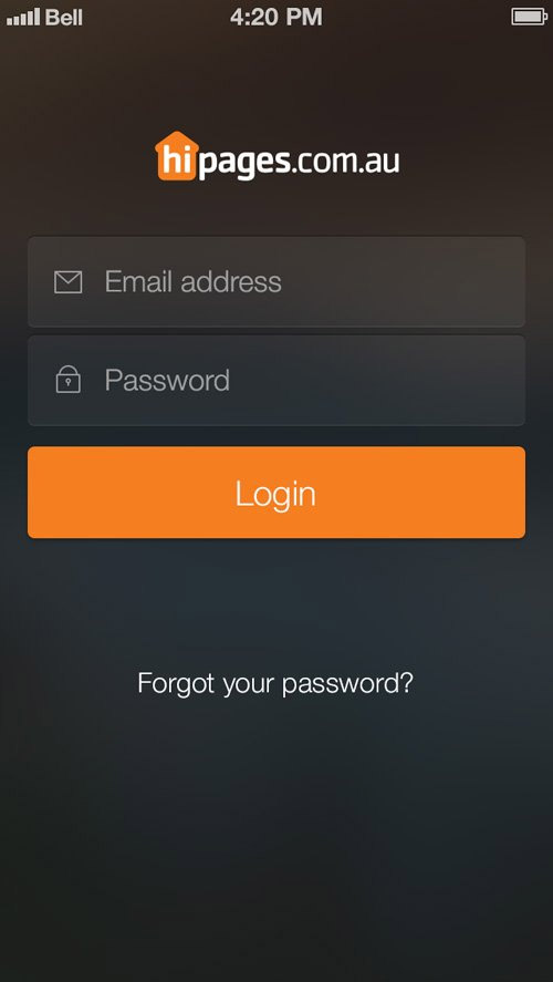 深色藍(lán)色背景,加深紅色按鈕,這個(gè)款app登錄界面設(shè)計(jì)也是很相稱的。