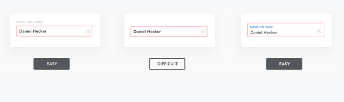 很明顯,第三種模式(浮動標(biāo)簽)是最強的,因為用戶可以清楚地看到他們所在的字段以及任何時候他們所打字的內(nèi)容。
