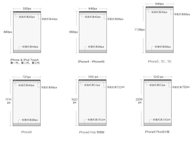 在iPhone 6還沒出的時候,都是用640×1136 px來做設計稿的,自從6的發(fā)布,所有的設計稿尺寸以750×1334 px來做設計稿尺寸。