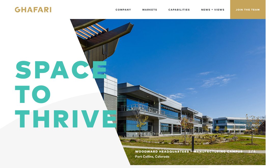 Ghafari 的這個(gè)頁面就很巧妙地運(yùn)用了曲線線條。這個(gè)頁面被硬朗的線條斜著劃分左右兩半,乍一看你很難發(fā)現(xiàn)其中所隱藏的曲線,這種相對生硬的劃分并沒有讓人覺得難受,很大程度上得益于左邊淺灰色的、微妙的曲線,以及右邊圖片底部綠色的草地所構(gòu)成的曲線,它們相互呼應(yīng),也讓整個(gè)設(shè)計(jì)不那么生硬。它們足夠簡單,但是效果卻頗為不錯(cuò)。