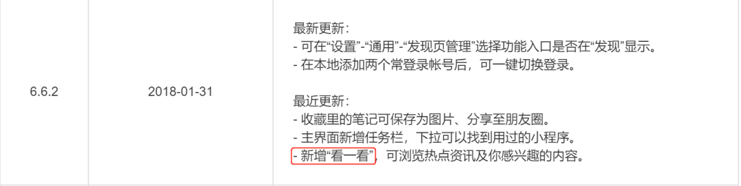 微信改版記錄中,最早出現(xiàn)“看一看”功能模塊的時候是在18年初