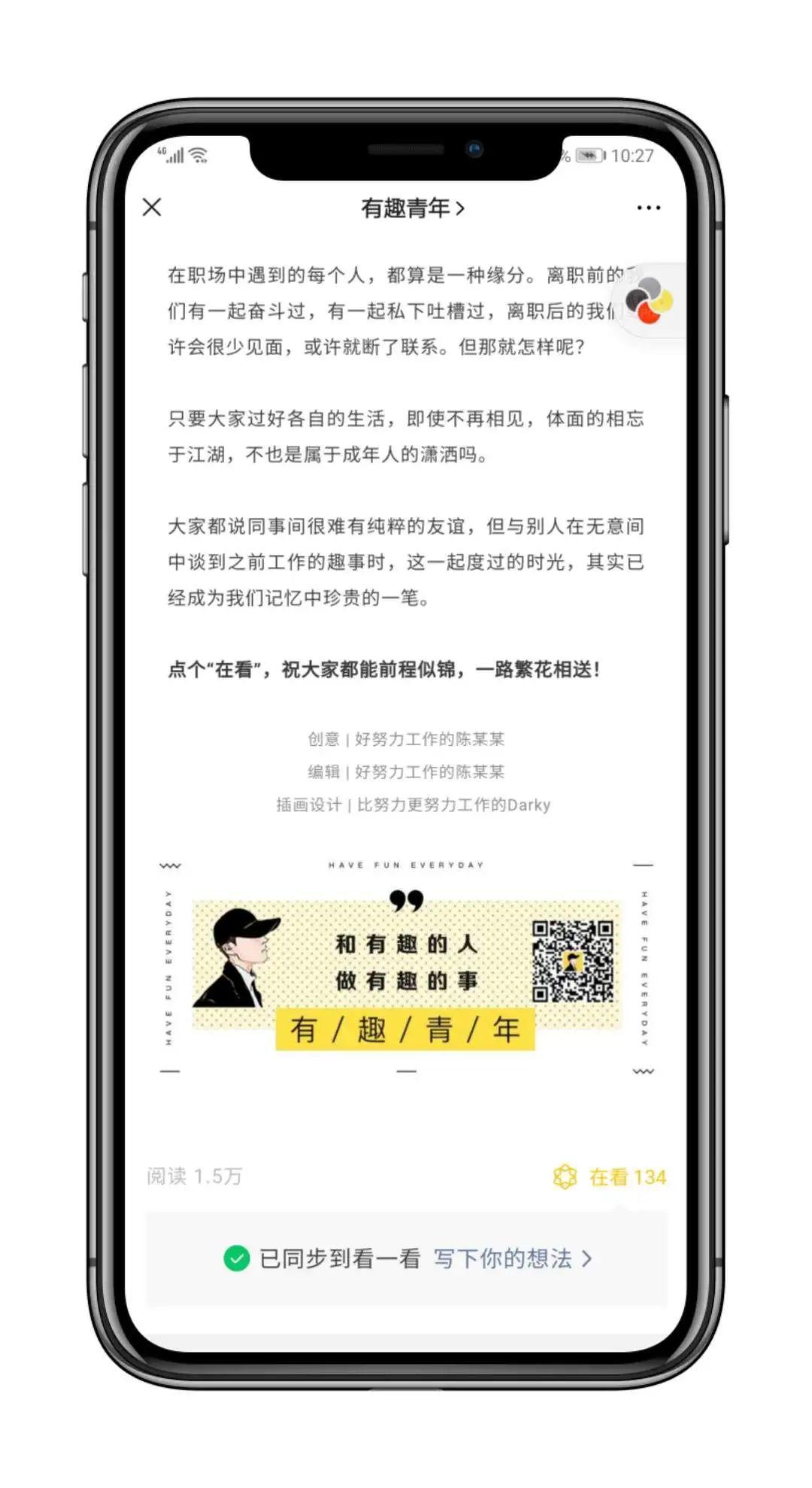 朋友名稱這個不用說,相當(dāng)于告訴看得人這篇文章是誰推薦的,來自哪里。而“在看”按鈕這里就有點(diǎn)玄機(jī)了,如果這個時候再點(diǎn)擊一遍“在看”其實(shí)并不是你真正地點(diǎn)開并瀏覽了文章,而是只是點(diǎn)擊了一下。且二次點(diǎn)擊“在看”的內(nèi)容又會經(jīng)過一次二次傳播:即“在看”的“在看”。