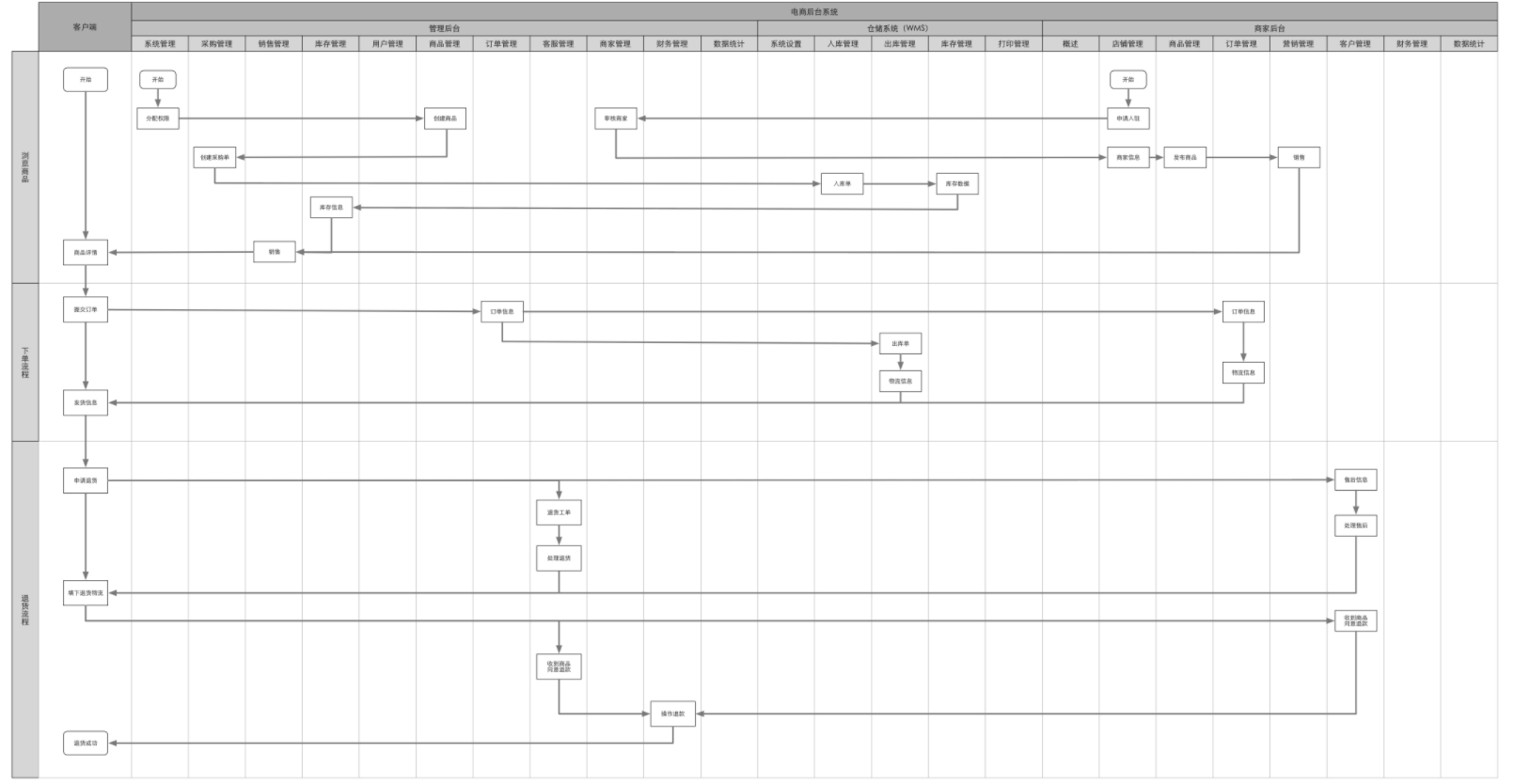 下面舉幾個例子來說明后臺系統(tǒng)之間信息的流轉(zhuǎn),就拿比較常見的瀏覽商品、下單流程、退貨流程來簡單說明下: