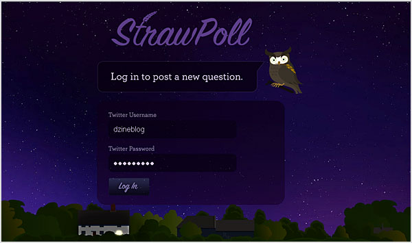 Straw Poll 采用主題是夜色,選用深紫色,使用夜間的動物貓頭鷹,互相襯托出主題。其特點是應用界面簡單、簡約。其登陸頁面也集產品之大成,雖然有大量的留白空間,但卻展現(xiàn)出了一切必要信息,沒有亂七八糟的東西。
