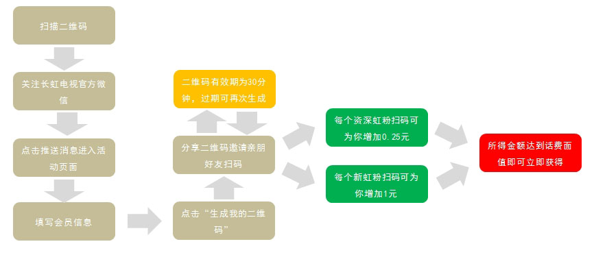 1、已關(guān)注長(zhǎng)虹微信的好友掃你的二維碼,你將獲得1元;首次關(guān)注長(zhǎng)虹微信好友掃你的二維碼,你將獲得2元;