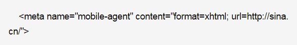 ②若當(dāng)前PC頁面對應(yīng)移動(dòng)頁面采用的是xhtm格式,添加meta適配代碼示例如下: