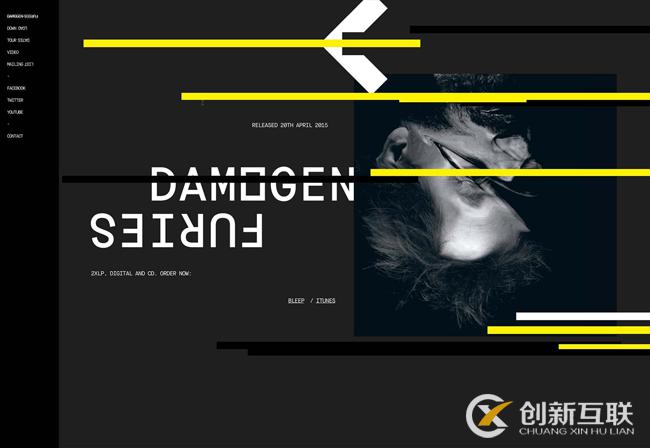 當然,你還可以在Squarepusher 的網站看到相對不同尋常一些的縱向菜單設計。導航被設計成標簽頁,訪客可以通過滾動切換,這是一種更為線性的導航欄設計。
