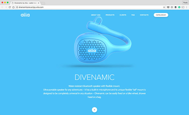 Aiia是防水揚(yáng)聲器,它的著陸頁(yè)非常棒。盡管有書卷的怪癖,我還是很喜歡這個(gè)頁(yè)面的整潔。有限的拷貝是一種很好的方法,可以把主要的想法傳達(dá)給用戶,而不會(huì)迷失在語言的大山中。