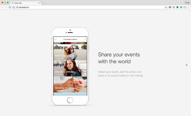 這是我最喜歡的應(yīng)用之一,Days。這是一款應(yīng)用程序,可以計(jì)算出事件發(fā)生的天數(shù)。這款應(yīng)用的登陸頁(yè)面每部分的拷貝數(shù)非常少。上面的截圖來自于登錄頁(yè)面的單個(gè)部分。注意超級(jí)短的副本。它看起來不錯(cuò),而且讀起來更好。