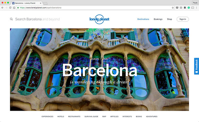 我們一直是孤獨(dú)星球的粉絲。當(dāng)前的設(shè)計(jì)風(fēng)格非常棒,因?yàn)樗鼈冎赜昧祟愃频脑O(shè)計(jì)元素。每個(gè)城市的頁(yè)面都使用相同的模板,這讓我們熟悉了一些東西。《孤獨(dú)星球》有很多內(nèi)容,所以使用模板讓讀者很容易閱讀。