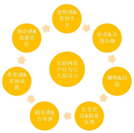 常見的激勵(lì)資源分為精神激勵(lì)和物質(zhì)激勵(lì)兩方面。精神激勵(lì)層面,筆者圍繞互聯(lián)網(wǎng)產(chǎn)品常規(guī)運(yùn)營總結(jié)了互聯(lián)網(wǎng)用戶行為七大原動(dòng)力。這七大原動(dòng)力分別是使命感&道德責(zé)任、恐懼感&害怕失去、好奇&尋找樂趣、懶惰&創(chuàng)造、社交表達(dá)&聯(lián)系反饋、擁有感&占有感、榮譽(yù)感&發(fā)展成就。