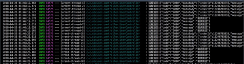 為了模擬并發(fā),在 User 應(yīng)用中開啟了 10 個(gè)線程調(diào)用 Order(限流次數(shù)為5) 接口(也可使用專業(yè)的并發(fā)測試工具 JMeter 等)。
