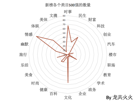 第二層是企業(yè)所處在新媒體的類目,新榜把行業(yè)分成了24類。這時(shí)候?qū)W霸君就處在教育類目。發(fā)現(xiàn)教育類目大號在500強(qiáng)中比較少。至少知道了教育在整體的位置。