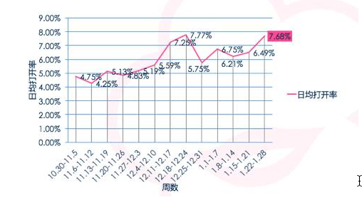 對比下自己的企業(yè),如果現(xiàn)在打開率是3%,按照周去設(shè)置話,不要一下子就開始翻倍設(shè)置,下一周設(shè)成6%。這是我在美麗說時(shí)期,我們的打開率KPI初設(shè)每周增加10%,最后想穩(wěn)定到8%左右。