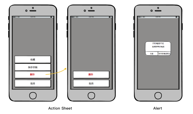 Action Sheet(動作菜單/動作面板/行動列表)是由用戶操作后觸發(fā)的一種特定的模態(tài)彈出框 ,呈現(xiàn)一組與當(dāng)前情境相關(guān)的兩個或多個選項。用戶可以使用Action Sheet啟動某個任務(wù),或者確認是否開始執(zhí)行某個可能具有破壞性的操作。Action Sheet屬于iOS規(guī)范,近年來Android平臺也出現(xiàn)了類似功能的控件。