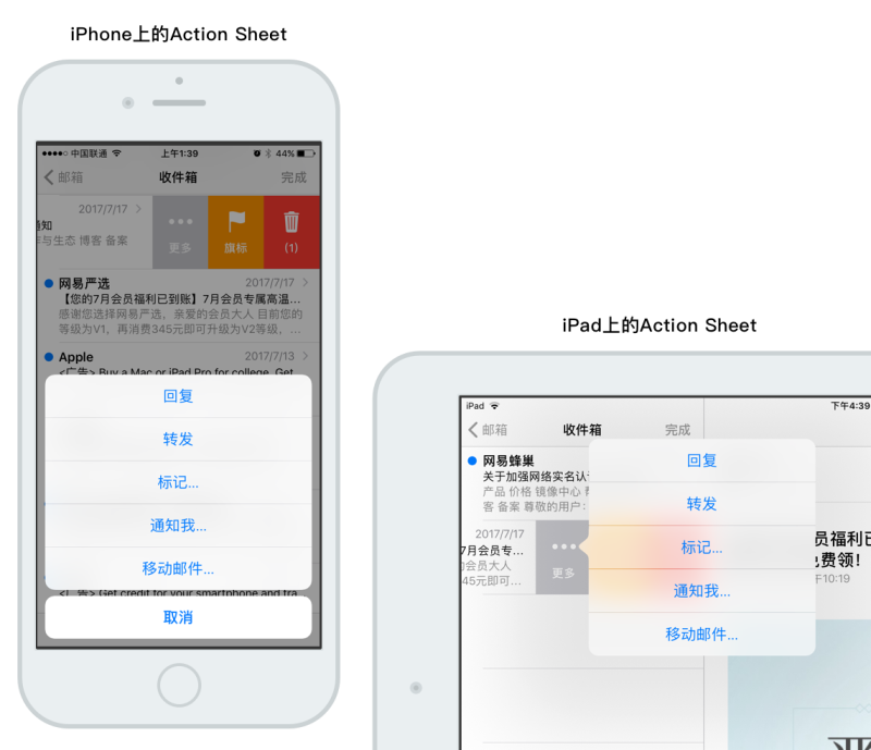 △ iPhone和iPad的Action Sheet