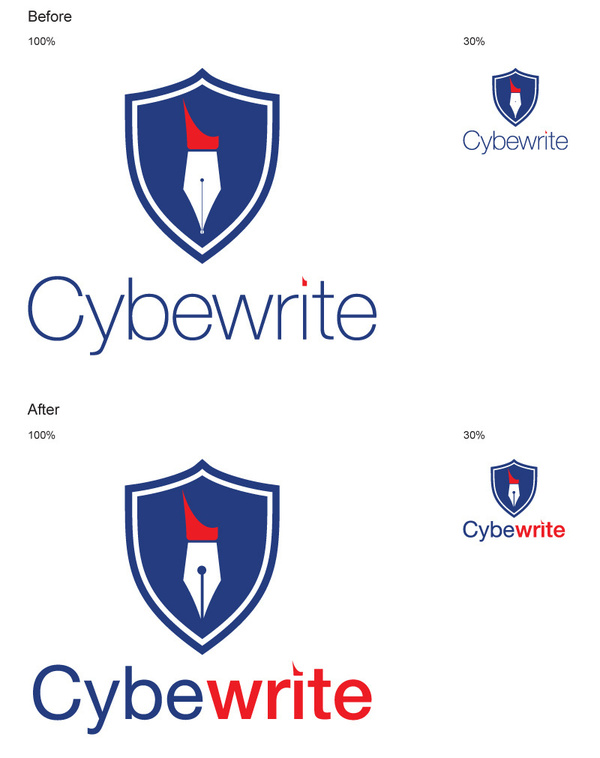 此外,加粗鋼筆尖中間的那條線和“Cybewrite”會使整個logo在尺寸變小時更清晰。請看如下: