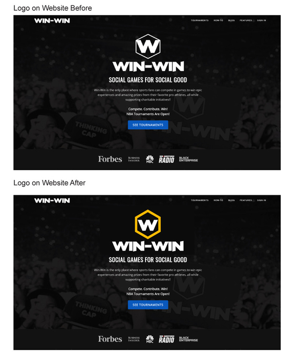 點評:原來黑白的Logo不論在應(yīng)用還是網(wǎng)頁上都不突出,無法引人注目。我建議將字母“W”外面的那個六邊形變成金色,這樣就會突出顯示這個“W”。金色也意味著金色的獎?wù)拢每梢约訌姴┺呐c體育這個主題。