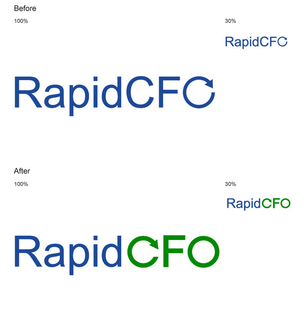 建議:我建議將原來字母“O”上帶有箭頭的設(shè)計用于字母“C”上,并使“O”恢復為完整的圓圈。并且,由于該公司主要涉及金融業(yè)務(wù),使用另一種品牌顏色比如綠色會加強用戶對公司的印象。