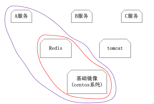 所以當(dāng)我們在使用 Docker構(gòu)建鏡像的時(shí)候,每一個(gè)命令都會在前一個(gè)命令的基礎(chǔ)上形成一個(gè)新鏡像層。如下圖,基礎(chǔ)鏡像就是centos鏡像,中間件鏡像就是兩個(gè)紅色圈,應(yīng)用鏡像就是紫色圈。其中redis+centos這樣疊加組合的中間件鏡像就可以供A服務(wù)或者B服務(wù)使用,這樣疊加組合更加靈活。仍和一種鏡像都可以從Docker hub公共倉庫中拉取。