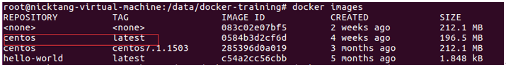 再用docker images查看的時(shí)候本地就增加了centos鏡像。
