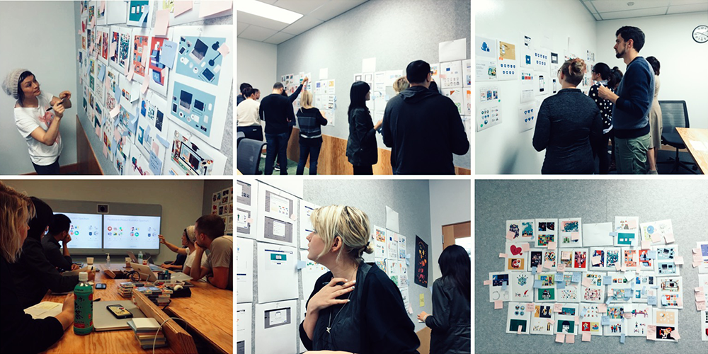 接下來,我將所有Facebook 旗下的商業(yè)產(chǎn)品、消費(fèi)者側(cè)寫以及色彩進(jìn)行了基本的審核。隨后,我將整體體驗(yàn)和視覺上的脫節(jié)之處,展現(xiàn)給了相關(guān)的所有團(tuán)隊(duì)。之后,我們針對(duì)不同的團(tuán)隊(duì)展開了研討會(huì),并且通過投票和貼紙?zhí)顚懸庖姷姆绞剑焖俚亟y(tǒng)一并協(xié)調(diào)出了我們共同認(rèn)為的成功的設(shè)計(jì)。