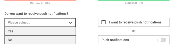 如果你的下拉菜單僅僅包含是/否、開/關(guān)這樣的選項,那么就用開關(guān)控件來替代它。