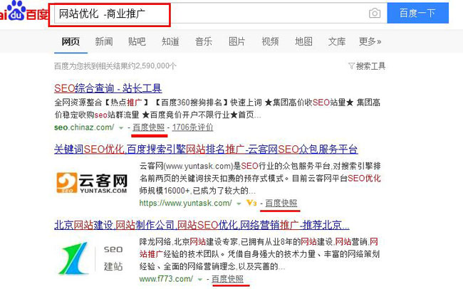 例如:網(wǎng)站優(yōu)化 -商業(yè)推廣 返回的則是包含“網(wǎng)站優(yōu)化”這個詞,卻不包含“商業(yè)推廣”的結(jié)果