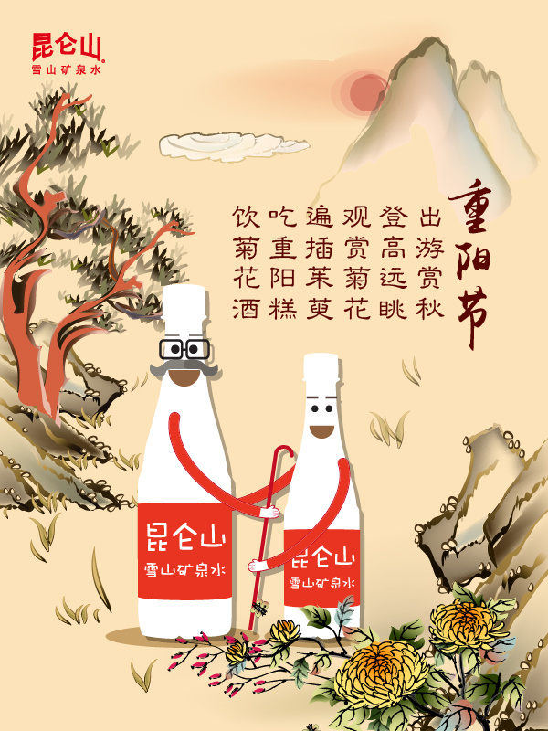 套路一:品牌主可以推出有關(guān)賞菊、登高、敬老的H5、海報。