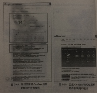 在百度搜索“北京天氣”,結(jié)果頁面布局幾乎一樣,如下圖:相信對用戶視線注意力的影響也是類似的。