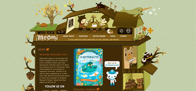 整個(gè)Meomi的設(shè)計(jì)包括有趣的角色,當(dāng)你滾動(dòng)它們的時(shí)候,它們會(huì)移動(dòng)和回應(yīng),在你探索的過(guò)程中,整個(gè)體驗(yàn)充滿了發(fā)現(xiàn)和快樂。我特別喜歡這個(gè)網(wǎng)站,因?yàn)樗苊Γ愫芸炀蜁?huì)知道,它的主題是什么,它的標(biāo)題是“一個(gè)小的設(shè)計(jì)工作室,專注于游戲,快樂,和威士忌。”